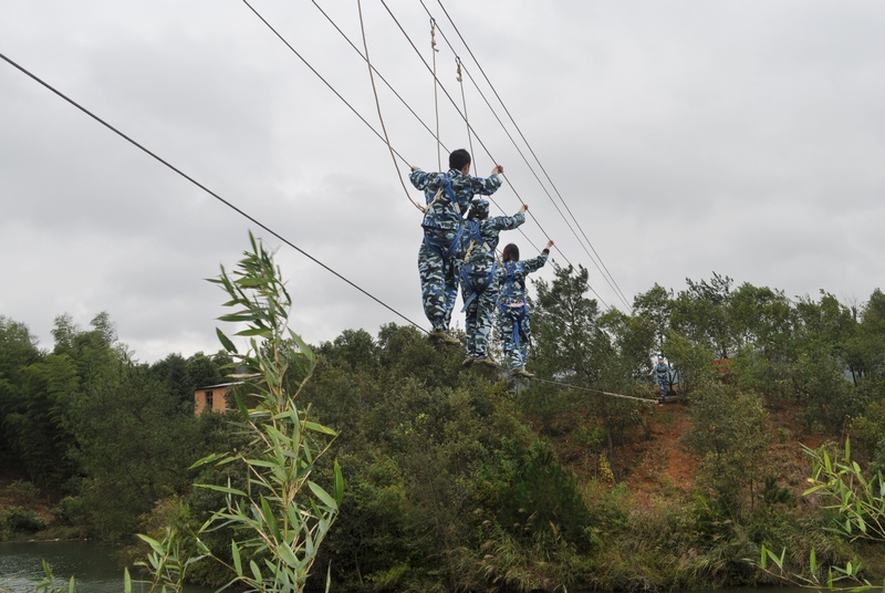 在“緬甸橋”項目中,看著橫跨湖面的高空鋼絲橋,有的隊員躍躍欲試,有的隊員望而怯步,但是所有隊員還是堅持都走過了鋼絲橋,通過該項目,體驗了雜技中走鋼絲的感覺,認識到面臨困境的時候,沉著、冷靜是度過難關(guān)的制勝武器,要取得勝利要有永不放棄、追求勝利的自信心。