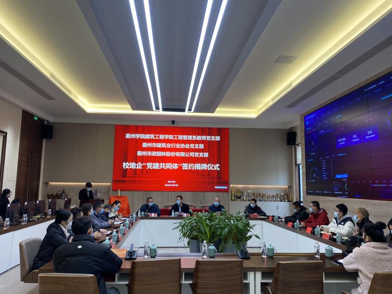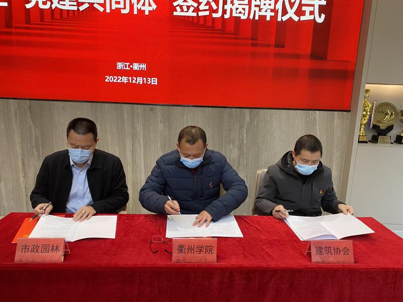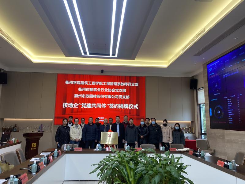 12月13日下午,中共衢州學(xué)院建筑工程學(xué)院工程管理系教師黨支部,中共衢州市建筑業(yè)行業(yè)協(xié)會黨支部,中共衢州市政園林股份有限公司黨支部三方聯(lián)合舉行了校地企“黨建共同體” 簽約揭牌儀式。