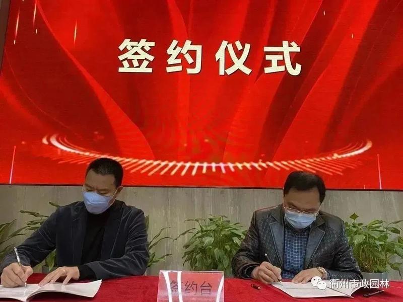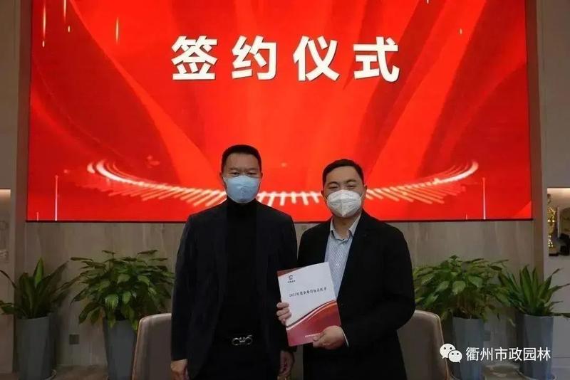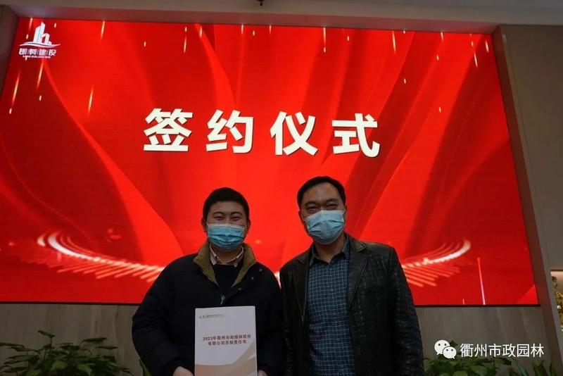 朗尊集團(tuán)陳妙華總裁與衢州市政園林總經(jīng)理林玕簽訂2023年市政園林目標(biāo)責(zé)任書