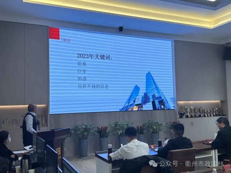 浙江凱淇控股有限公司于2024年1月26日-1月27日順利召開集團(tuán)2023年度工作總結(jié)會(huì)議,會(huì)議所有議程歷時(shí)兩天。凱淇控股旗下朗尊建設(shè)集團(tuán)、市政園林公司、市政建設(shè)開發(fā)公司、園也園林公司、鴻添設(shè)計(jì)公司、森固文旅、和韻衢州、常山億森、尺方間園藝、壹沃科技、忠博貿(mào)易等子公司主要負(fù)責(zé)人及凱淇控股各部門負(fù)責(zé)人、集團(tuán)高管相繼在會(huì)議上作年度工作總結(jié)。最后由凱淇控股鄭榮忠董事長講話。