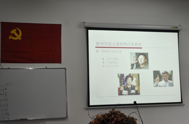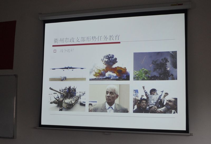 教育以圖片、文字形式,展示了當(dāng)前利比亞戰(zhàn)爭的反復(fù)進(jìn)程,分析了利比亞戰(zhàn)爭的國際和歷史原因,并以本次戰(zhàn)爭為切入點,共同探討了當(dāng)前國際形勢,號召與會黨員要珍惜我國和平穩(wěn)定的國際國內(nèi)環(huán)境,在各自的崗位上努力奮斗,與全國人民一道共同建設(shè)強大祖國。
