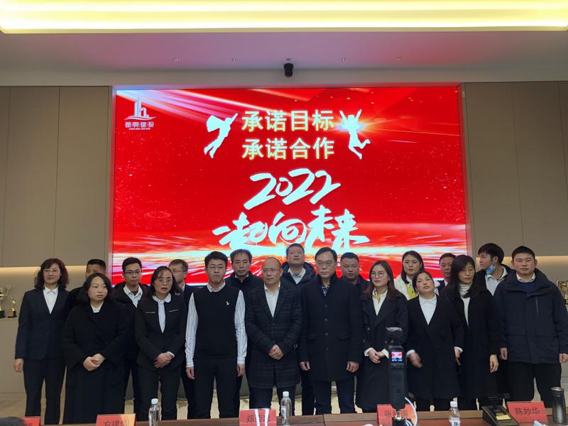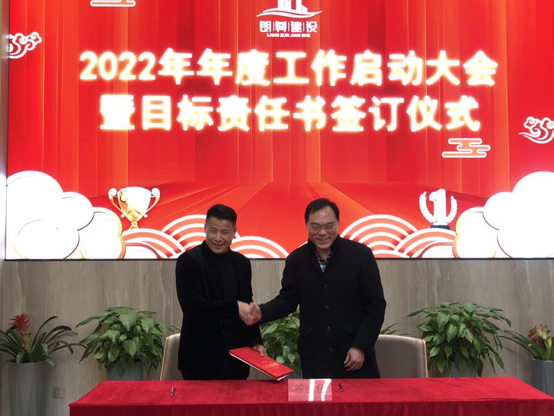 本次會議以“承諾目標,承諾合作。2022,一起向未來”為主題,安排部署朗尊建設集團各部門、各子公司及各項目部新一年的工作目標,并與相關負責人簽訂了目標責任書,標志著2022年度工作正式全面啟動。