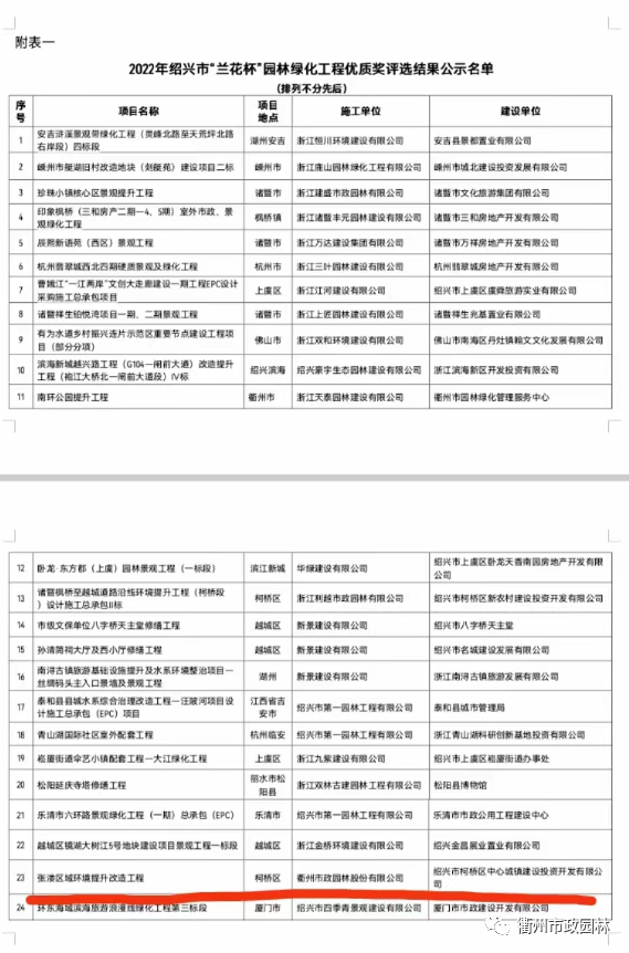 我司承建的張溇區(qū)域環(huán)境提升改造工程榮獲2022年紹興市“蘭花杯”園林綠化工程優(yōu)質獎。