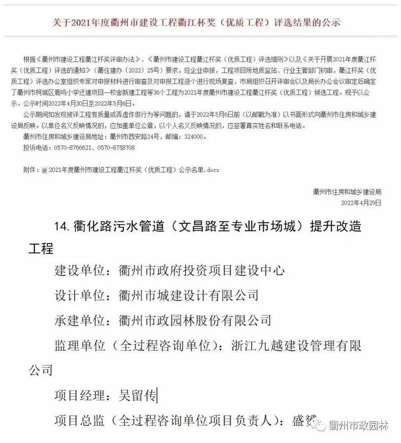 我司承建的溫嶺市經(jīng)四路三期(中華北路北延)工程,榮獲臺州市2022年建設工程“括蒼杯”優(yōu)質工程。