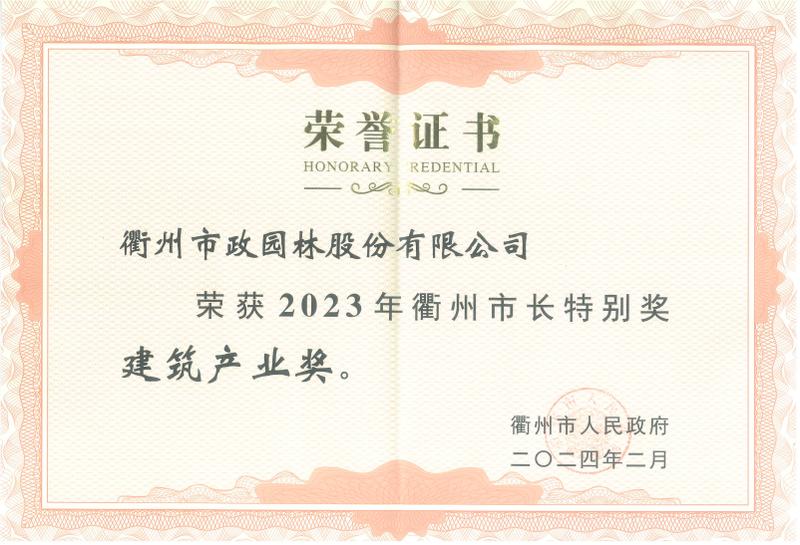 2月19日,在十個(gè)“橋頭堡”建設(shè)第五次工作例會(huì)暨“六治六提”作風(fēng)建設(shè)推進(jìn)會(huì)上,衢州市政園林股份有限公司獲得2023年度衢州市長(zhǎng)特別獎(jiǎng)—建筑產(chǎn)業(yè)獎(jiǎng)。