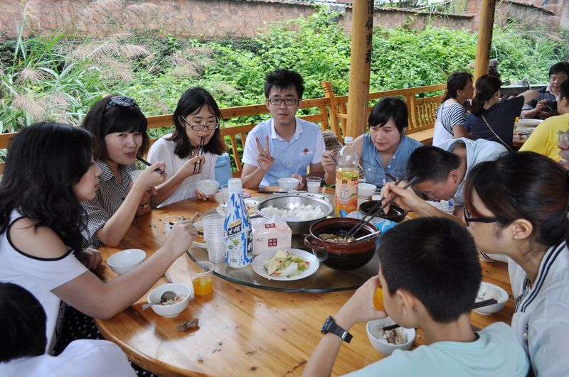 ?????? 中午時分,公司一行又驅(qū)車前往七里農(nóng)家樂用餐,辛勤的采摘加上別具風(fēng)味的農(nóng)家特色菜,讓大家味口大開、大快朵頤。