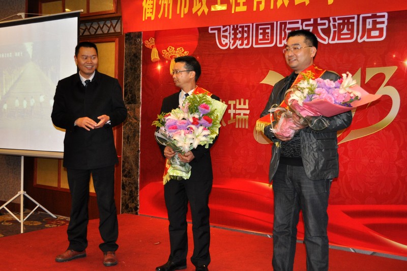 2月7日晚,公司2013迎春年會在飛翔國際大酒店隆重舉行,公司全體員工、應(yīng)邀建造師及佳賓出席。年會在激昂的音樂中拉開帷幕,在主持人熱情洋溢的開場后,首先進(jìn)行的是年度優(yōu)秀員工表彰,為財務(wù)部黃彩霞、行政部薛家美、工程部夏紅成頒發(fā)了公司年度優(yōu)秀員工榮譽(yù)證書和獎品,緊接著為財務(wù)部經(jīng)理鄭林萍頒發(fā)了公司年度優(yōu)秀主管榮譽(yù)證書和獎品。